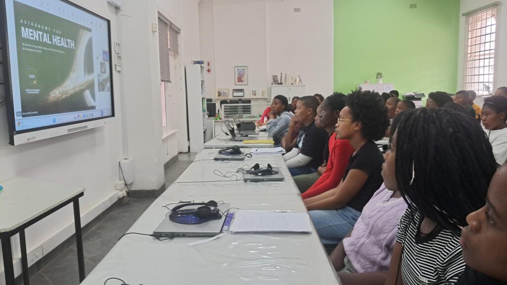 On Saturday, October 25, 2025, Dominic Vertue from the International Astronomical Union’s Office of Astronomy for Development (IAU OAD) engaged Grade 9 learners at the Maths and Science Leadership Academy (MSLA) in Kimberley, South Africa in a session titled “Under the Same Sky: Astronomy for Mental Health.” The talk explored how experiences of awe, reflection, and shared curiosity can support wellbeing and a sense of connection.